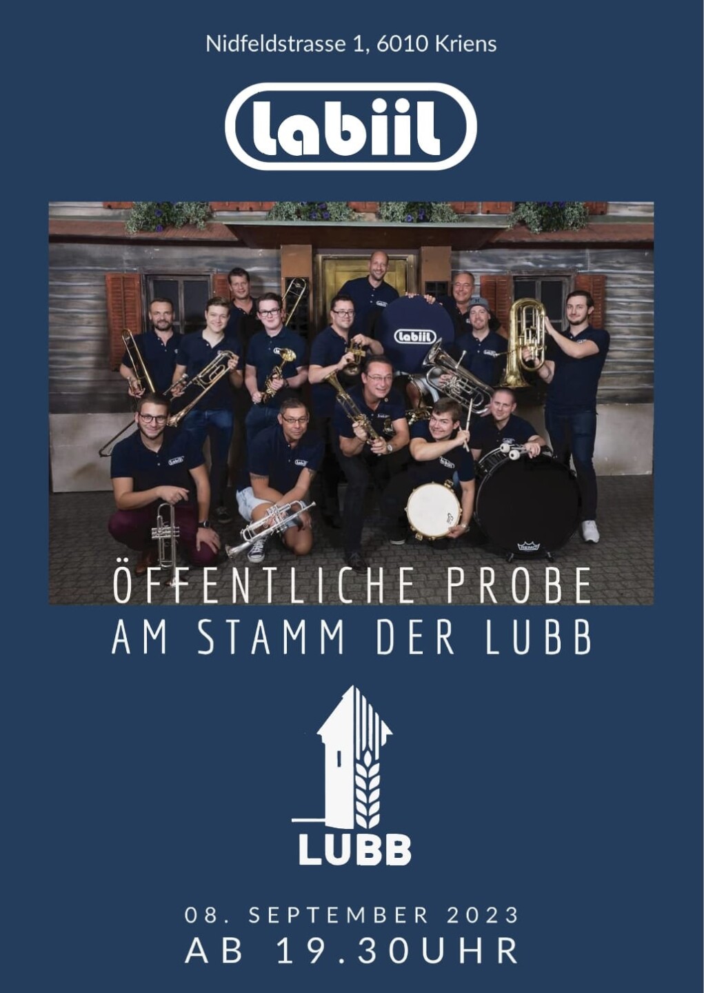Öffentliche Probe Wir freuen uns, auch dieses Jahr unsere legendäre öffentliche Probe am Stamm der Luzerner BierBrauer durchzuführen. Datum: 08. August 2025 Uhrzeit: 19.30 Uhr Ort: LUBB, Nidfeldstrasse 1, 6010 Kriens Lasst uns zusammen an diesem Abend anstossen und unsere Melodien geniessen!